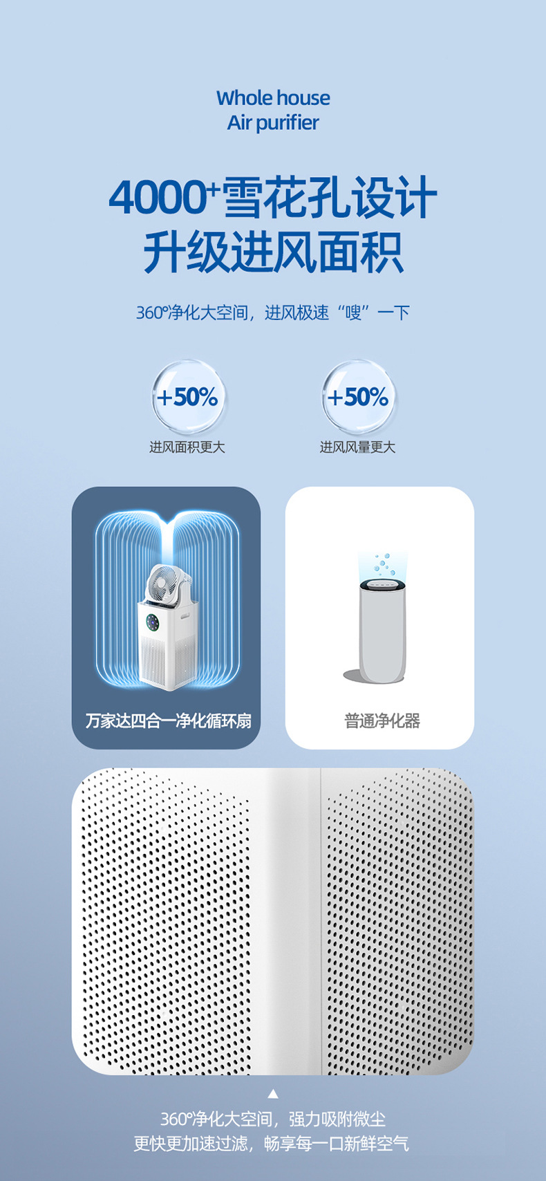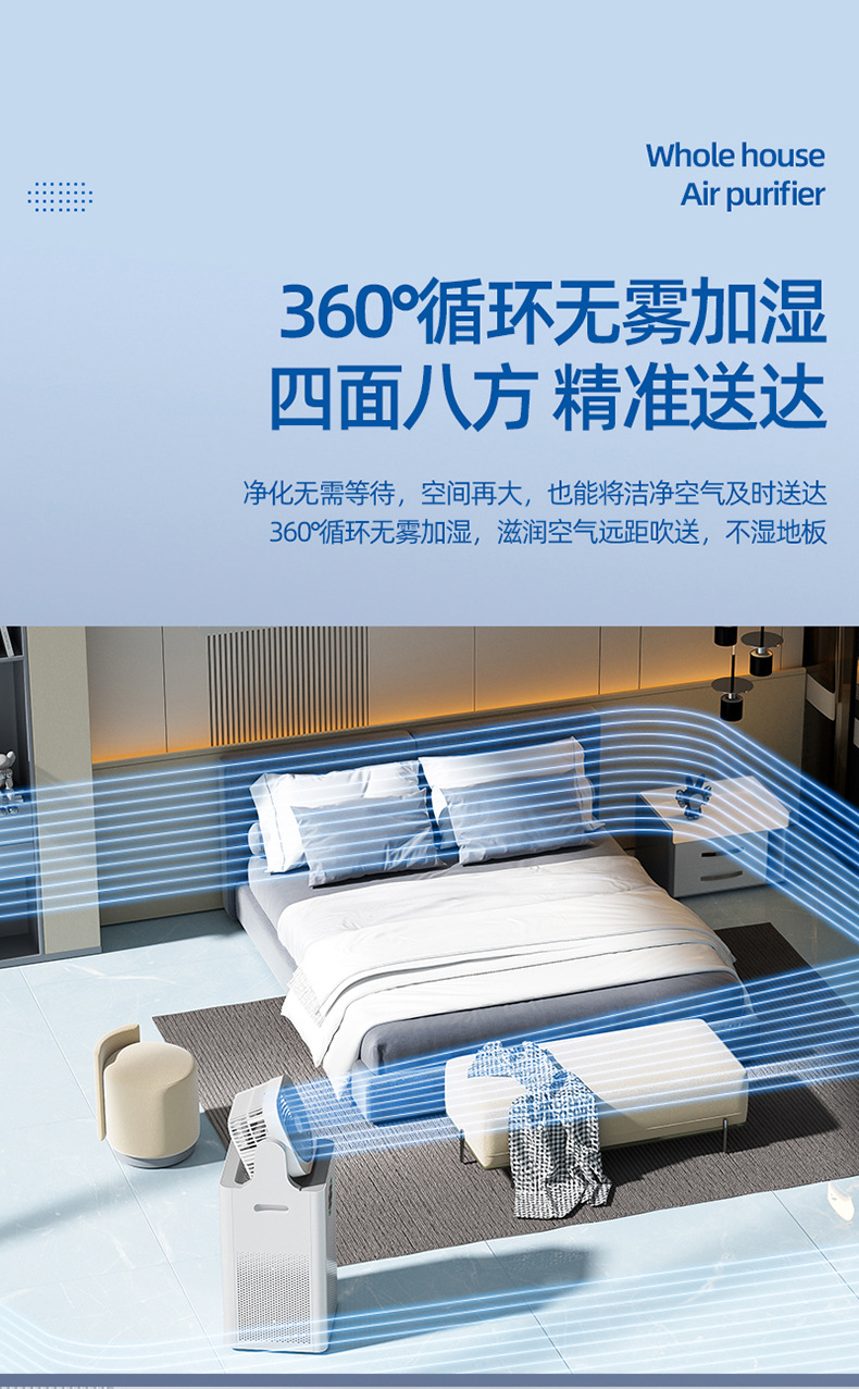 智能循环:双风道立体送风,快速均衡室内空气质量,覆盖面积达80㎡;
