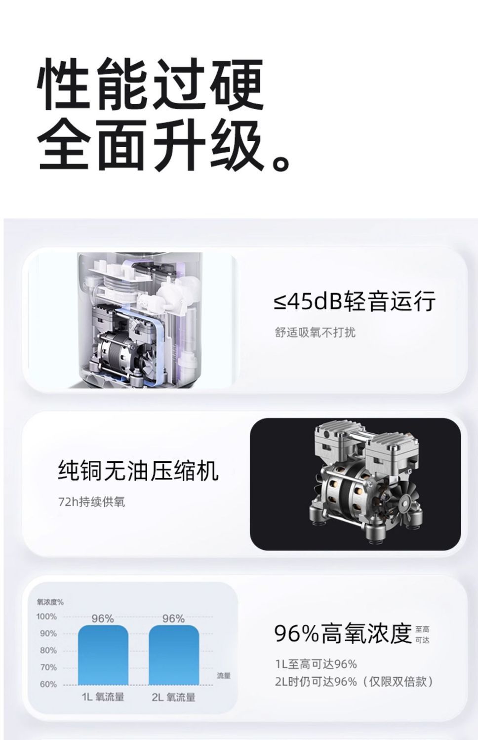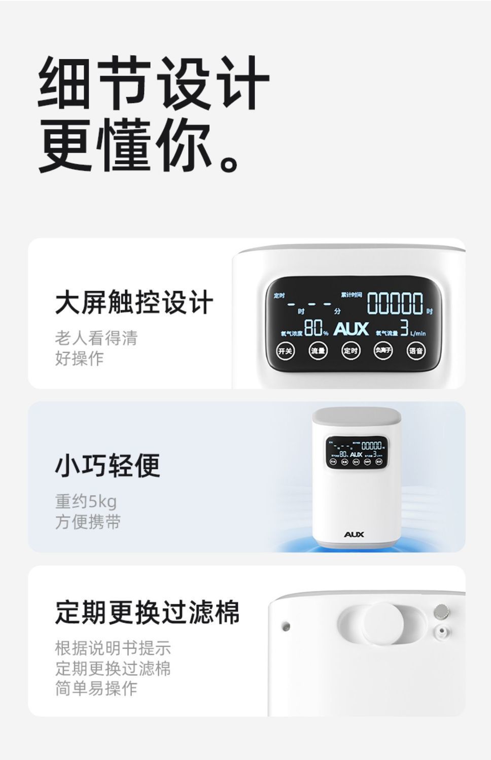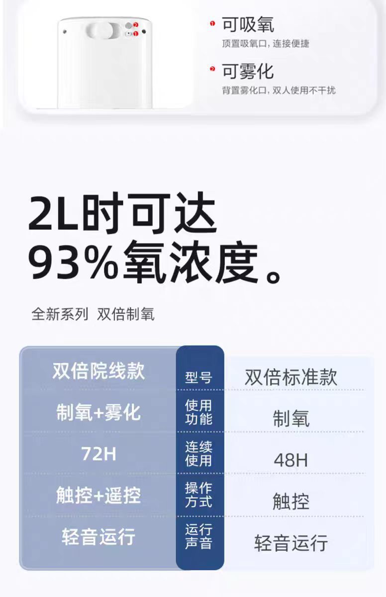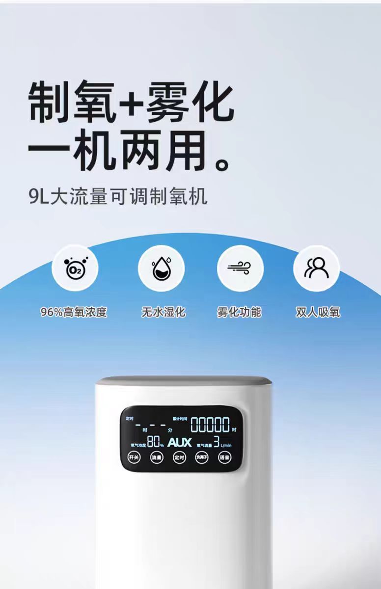 多层过滤系统(初效过滤、HEPA抗菌层、分子筛等),高效拦截粉尘、细菌、PM2.5,输出氧气纯度≥93%,敏感人群(哮喘、过敏体质)适用。