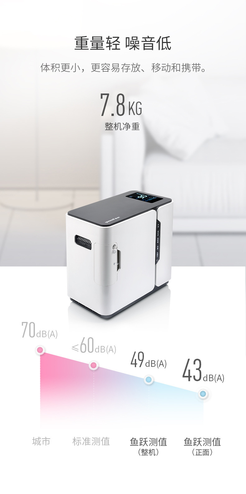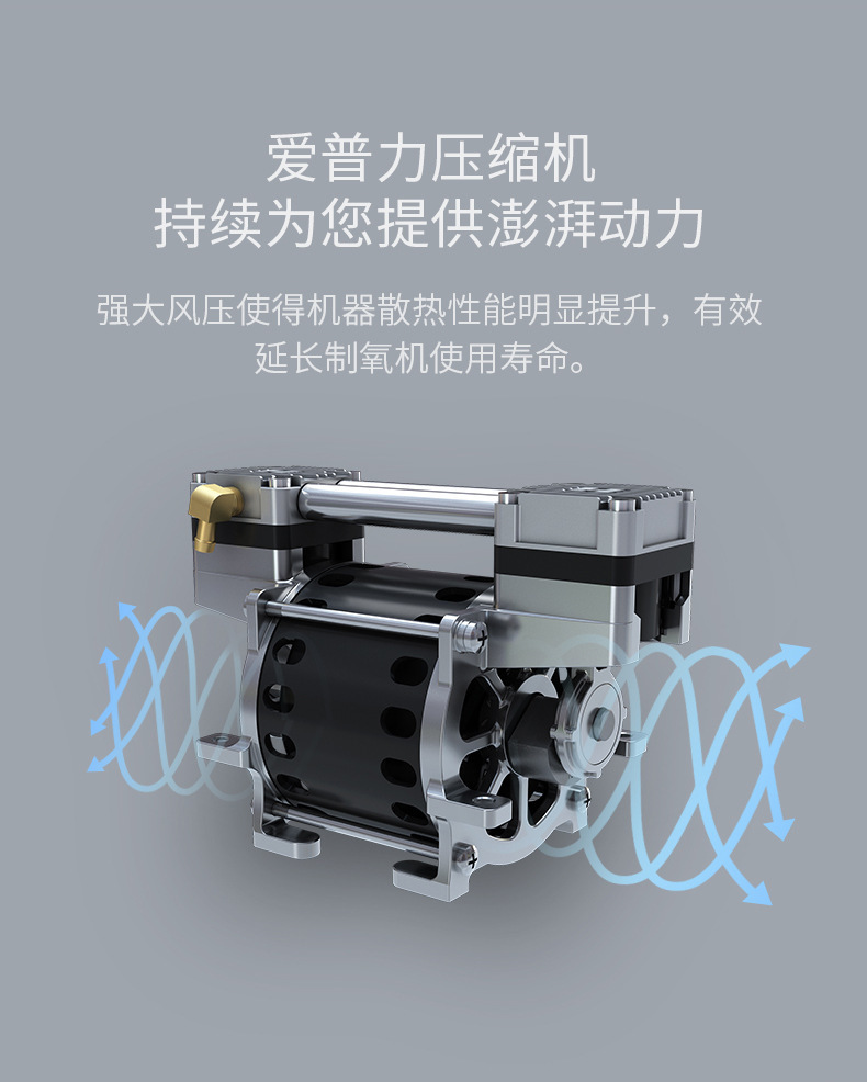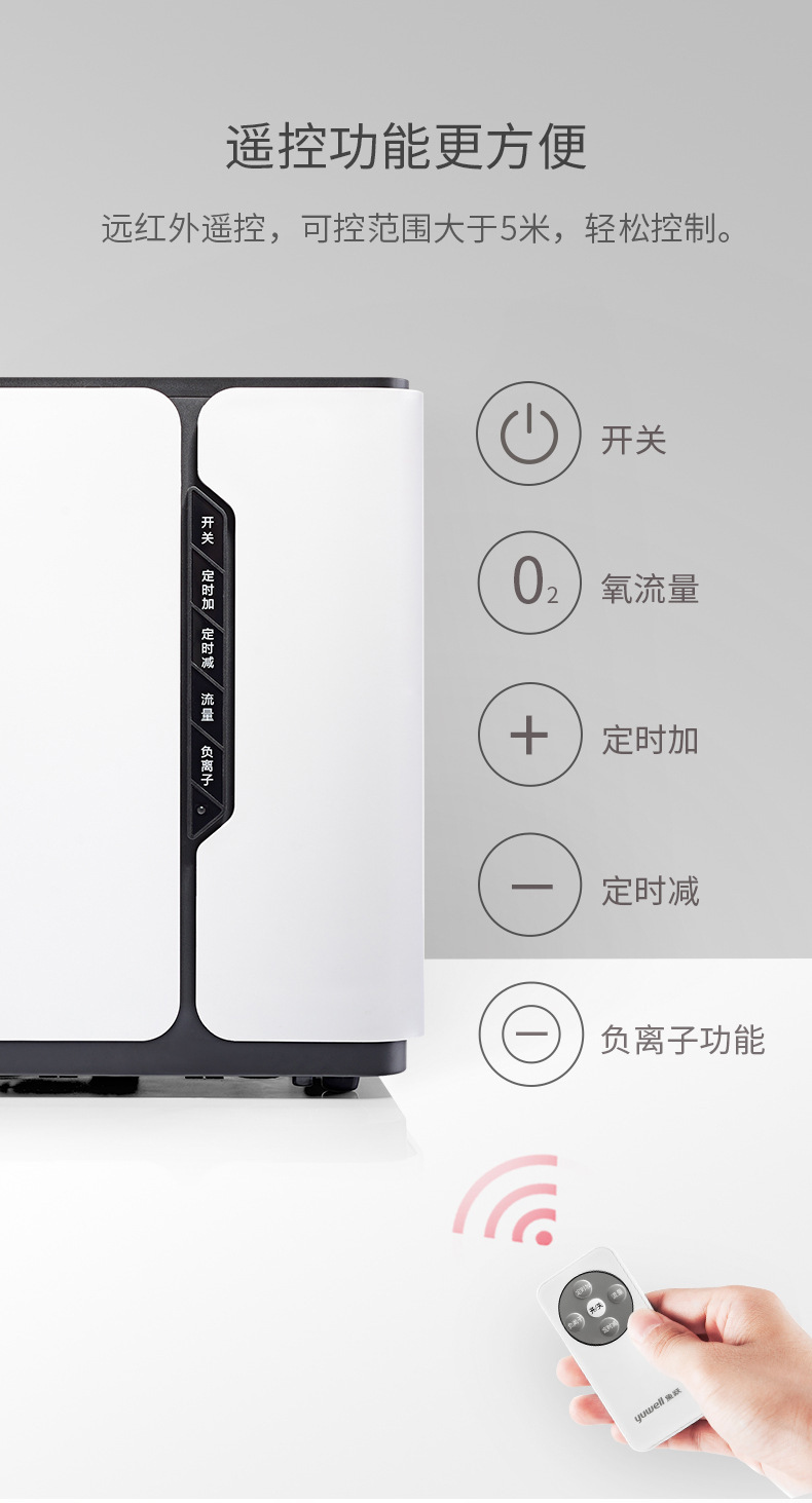 轻量便携,灵活补氧:机身仅重5kg,支持卧室、书房等多场景移动使用,轻松适配居家、办公及短途出行。